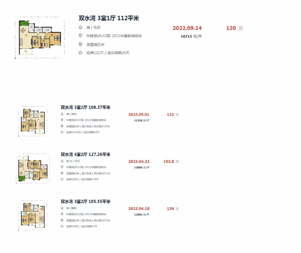 同戶型二手房毛坯的成交記錄都是120萬(wàn),帶裝修的單價(jià)得1.1萬(wàn)-1.3萬(wàn)(圖3)。