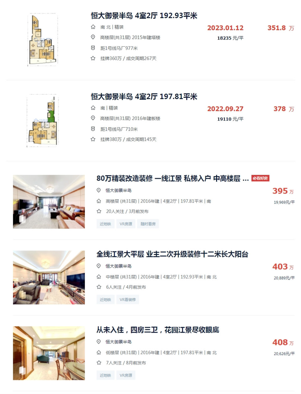 最后說說房子,恒大御景半島湘江苑,192平一線江景大平層,私梯入戶,3梯兩戶,一線江景河景,311萬成交,二手房大概賣這個價(圖三),大家說撿漏沒?