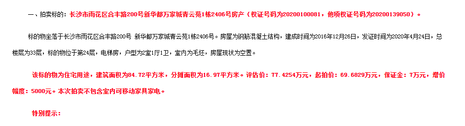 在湖南法拍網(wǎng)法拍房地產(chǎn)經(jīng)紀(jì)有限公司的輔助競拍下,莫小姐成功撿漏新華都萬家城法拍房一套,撿漏幾十萬,恭喜恭喜。