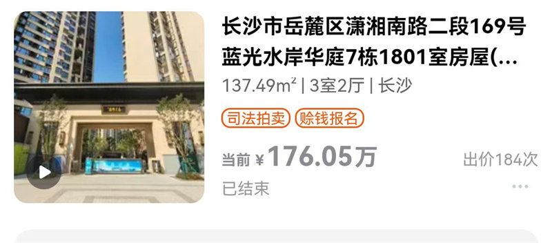 在湖南法拍網(wǎng)法拍房地產(chǎn)經(jīng)紀(jì)有限公司的輔助競(jìng)拍下,H老師成功撿漏藍(lán)光雍景半島一線江景法拍房一套,撿漏三四十萬(wàn)。