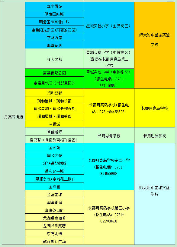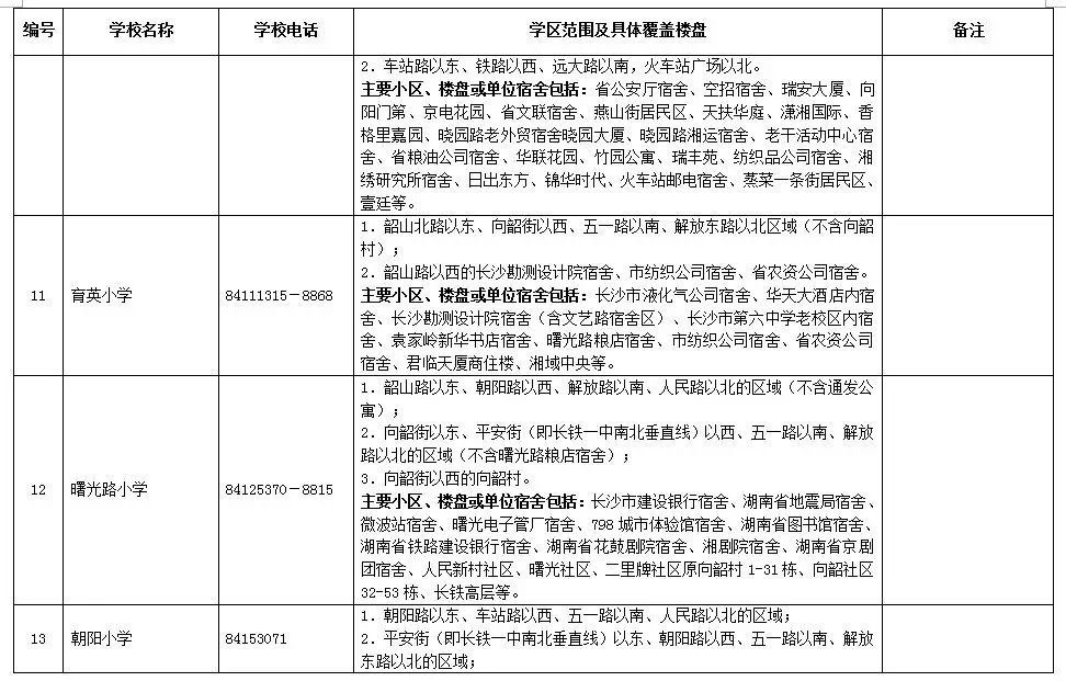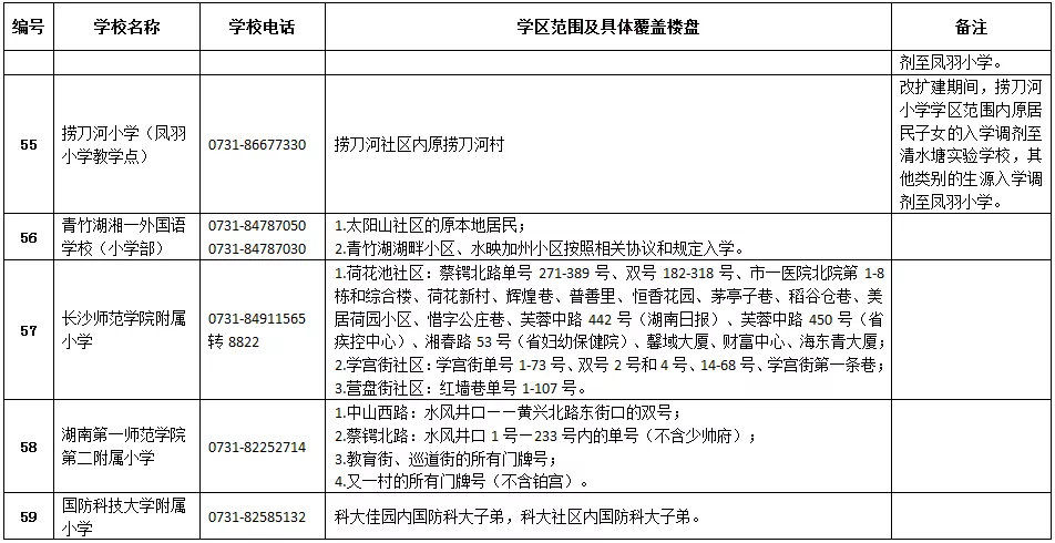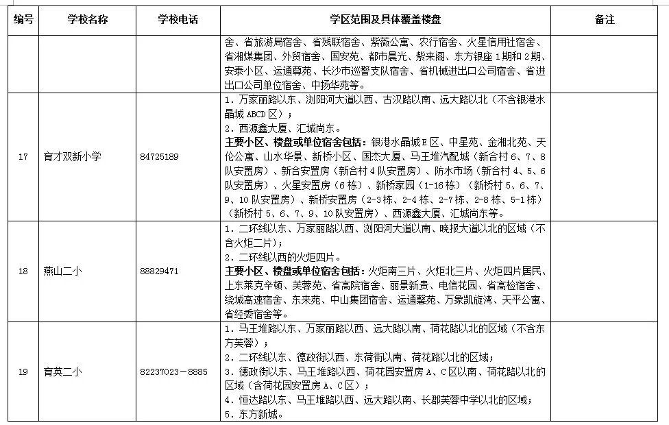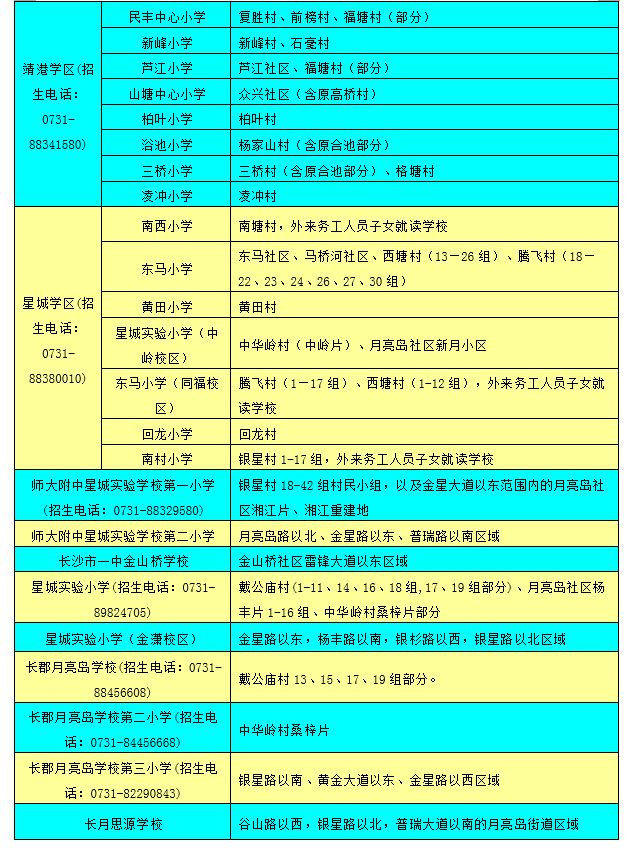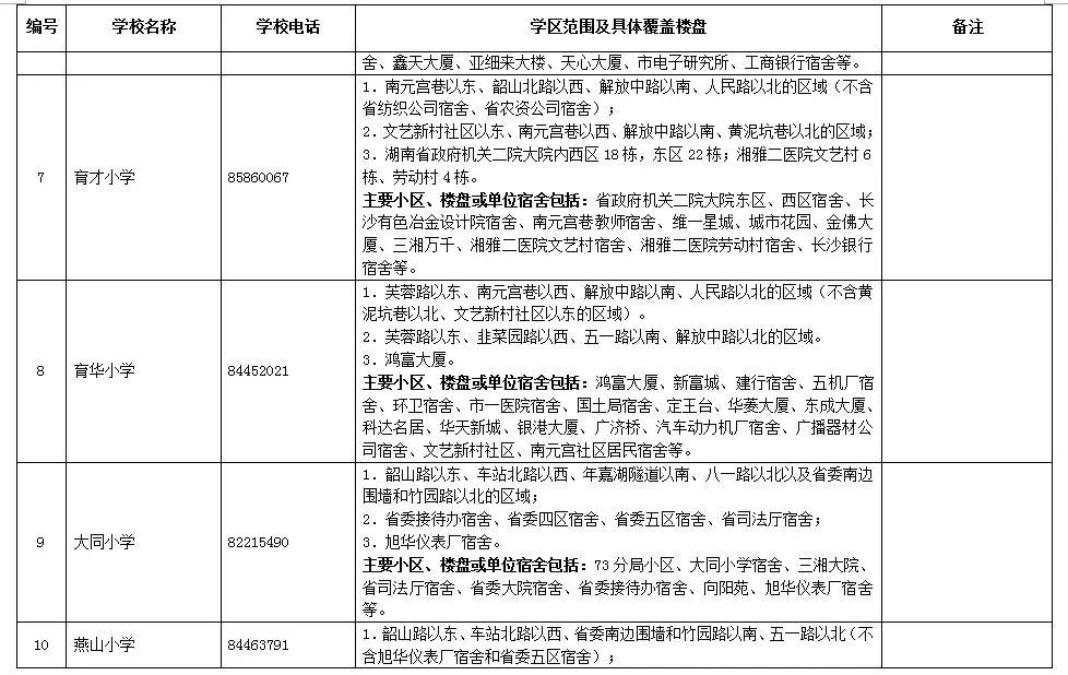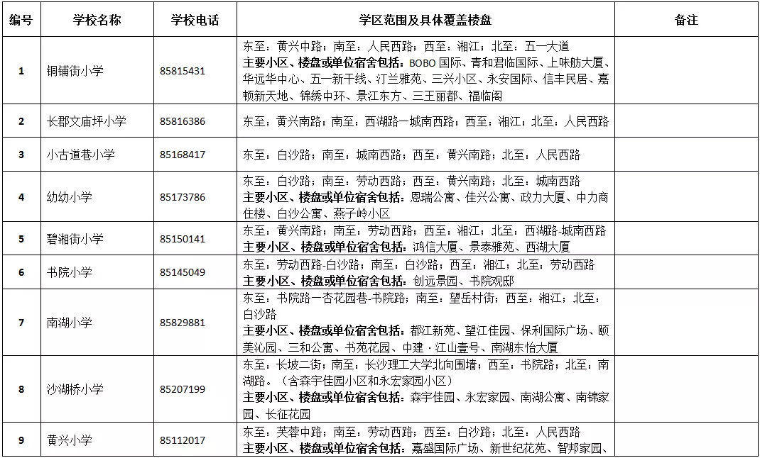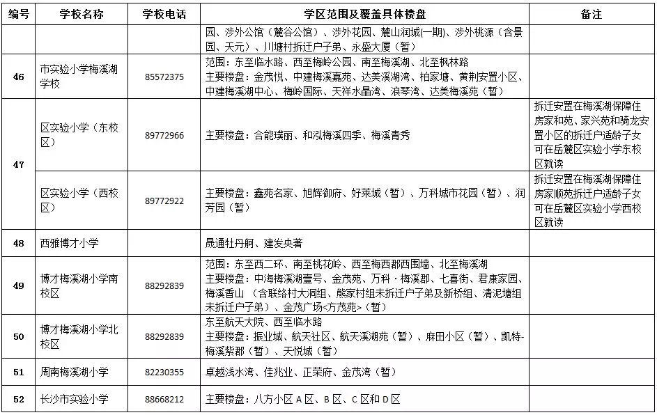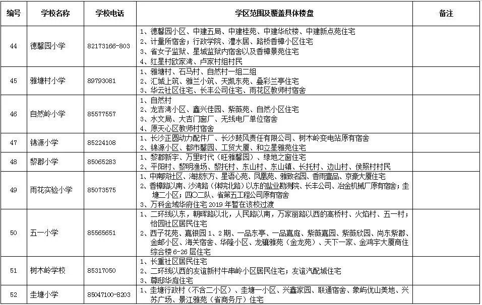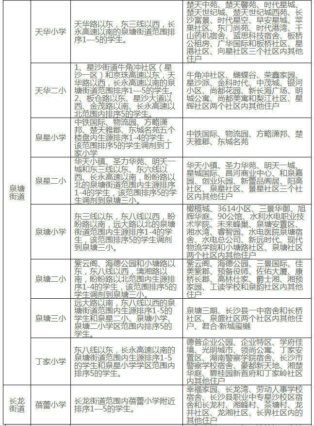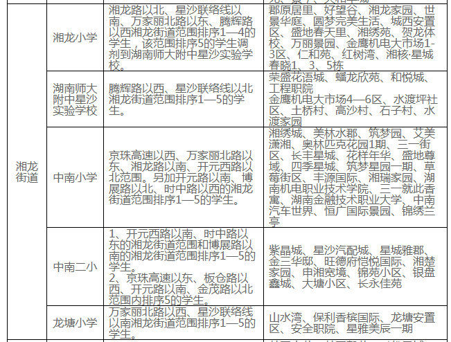 長沙市各區(qū)域學區(qū)劃分情況表