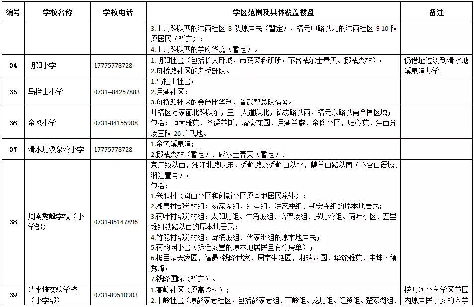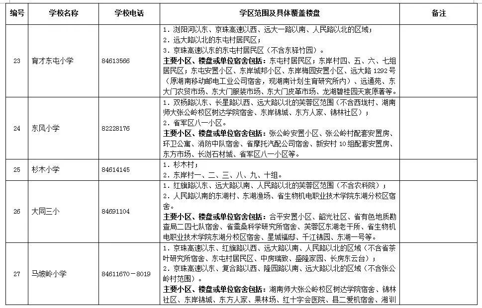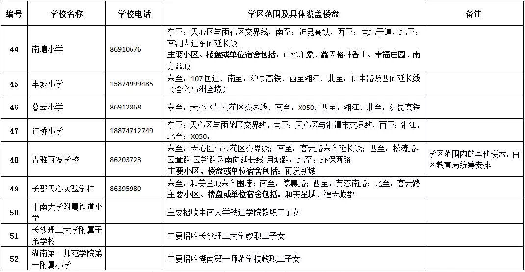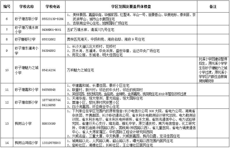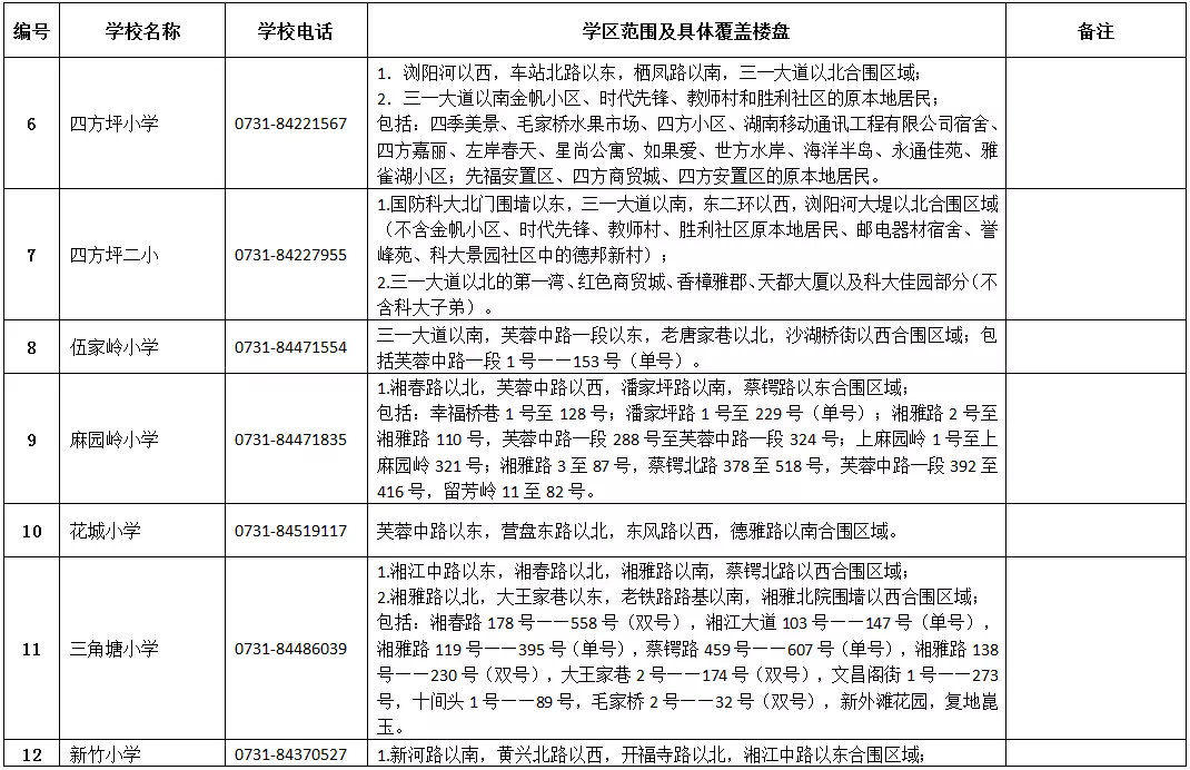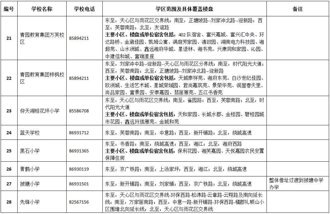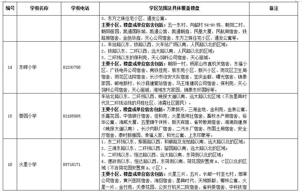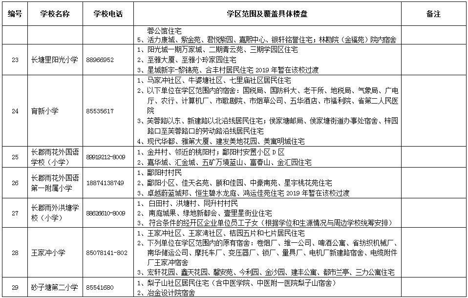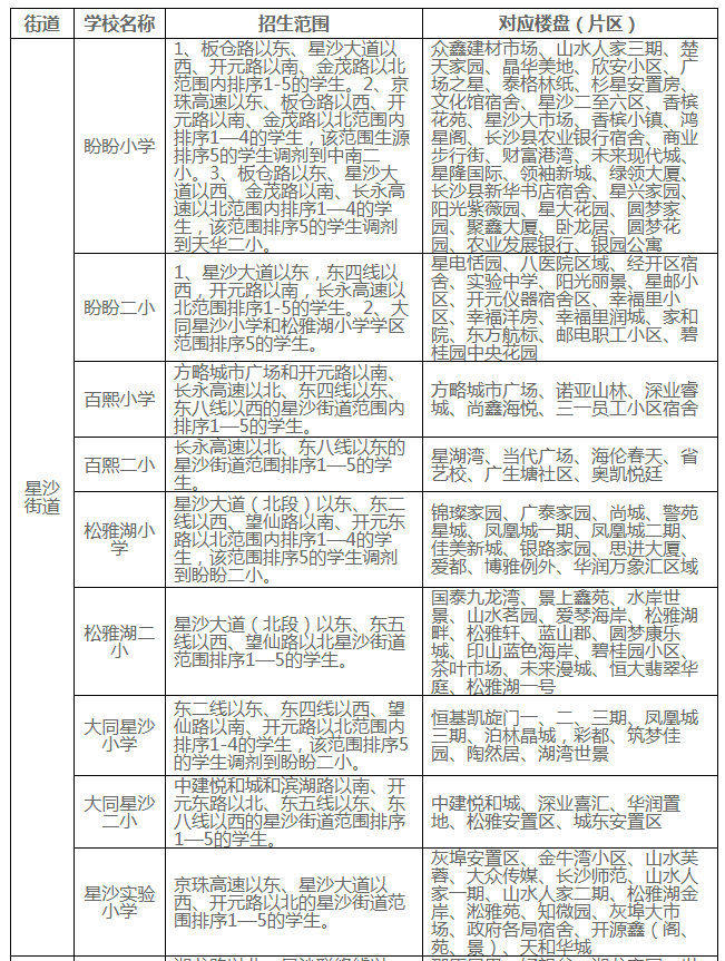 天心區(qū)小學學區(qū)劃分情況表
