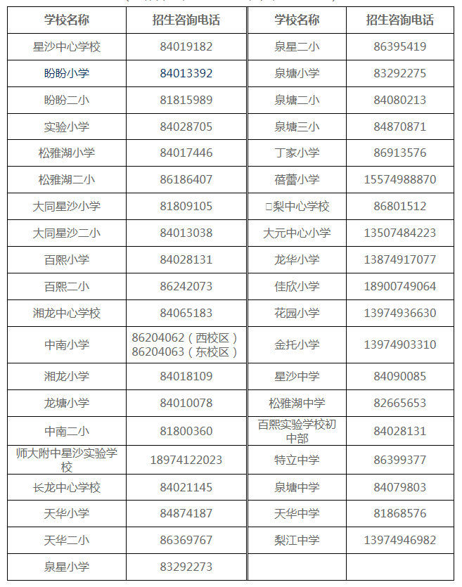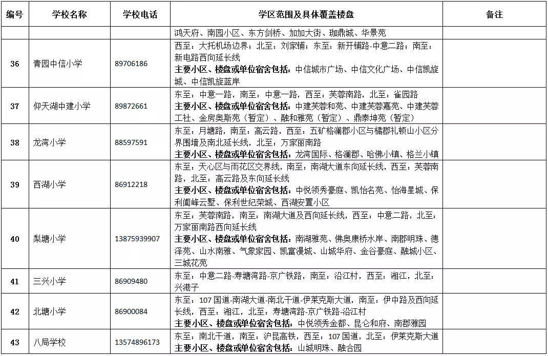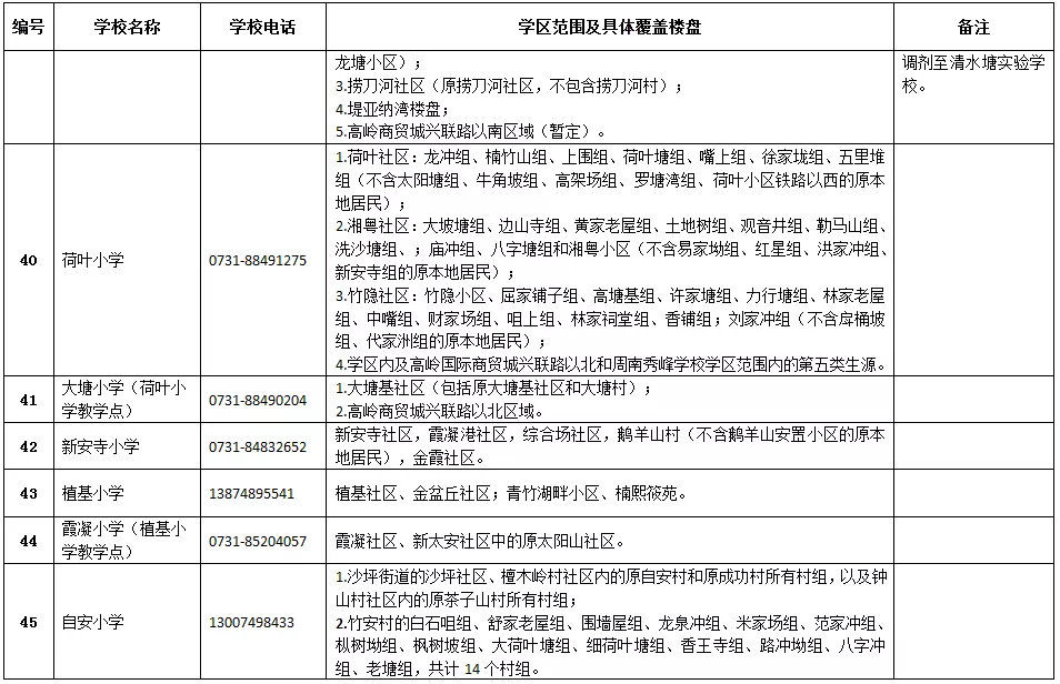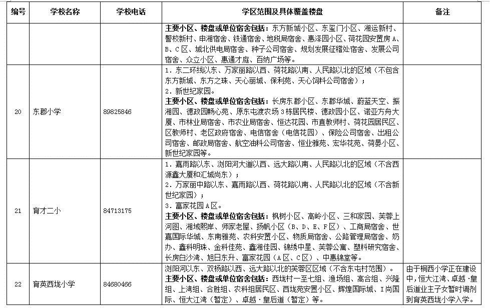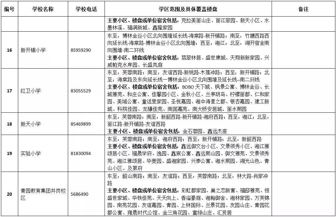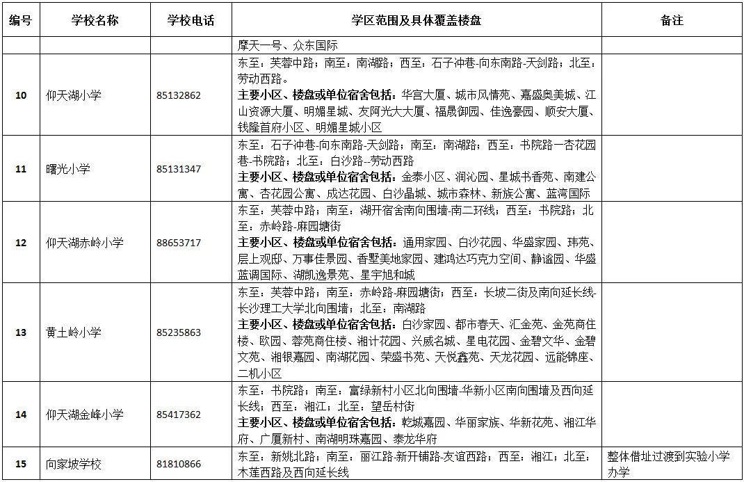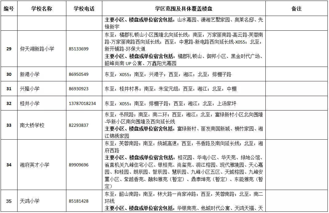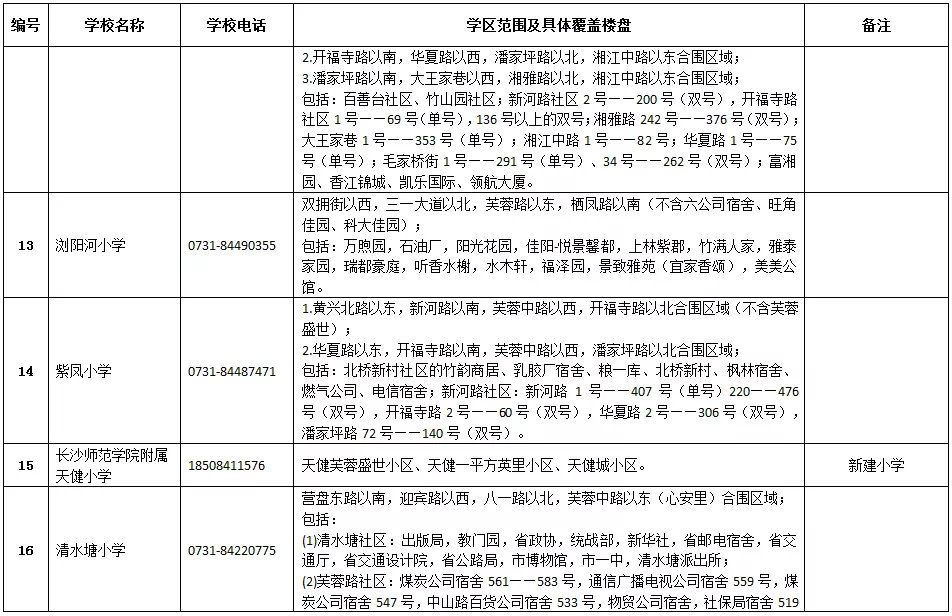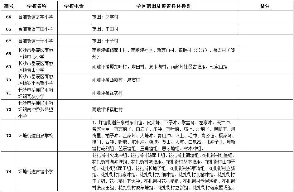 天心區(qū)小學學區(qū)劃分情況表