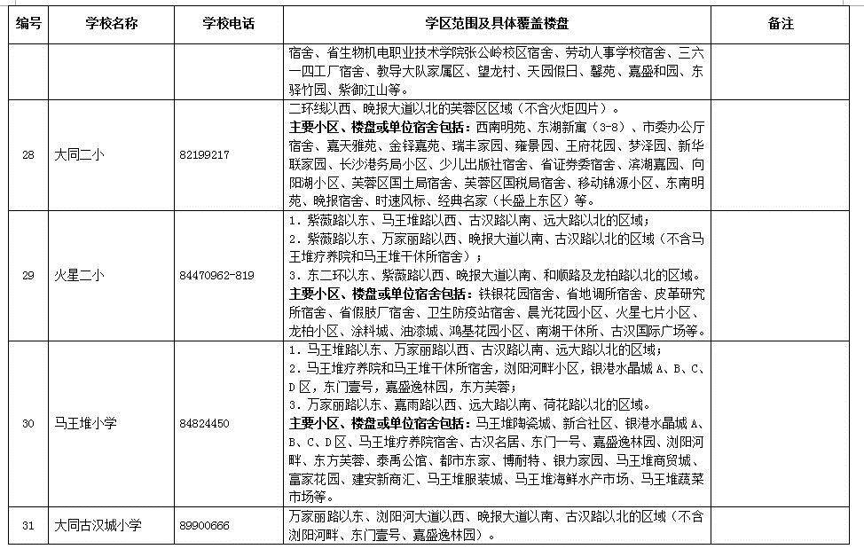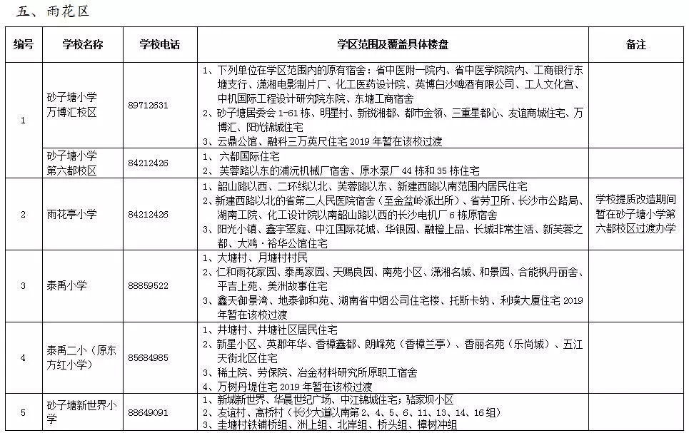 雨花區(qū)小學學區(qū)劃分情況表