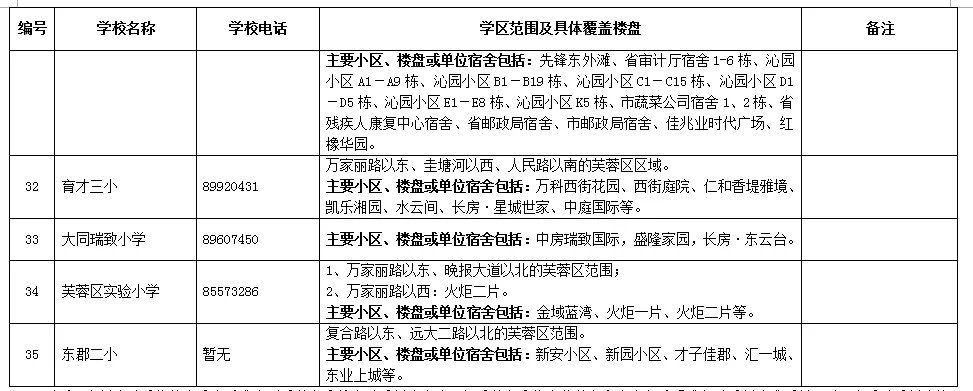 芙蓉區(qū)小學學區(qū)劃分情況表