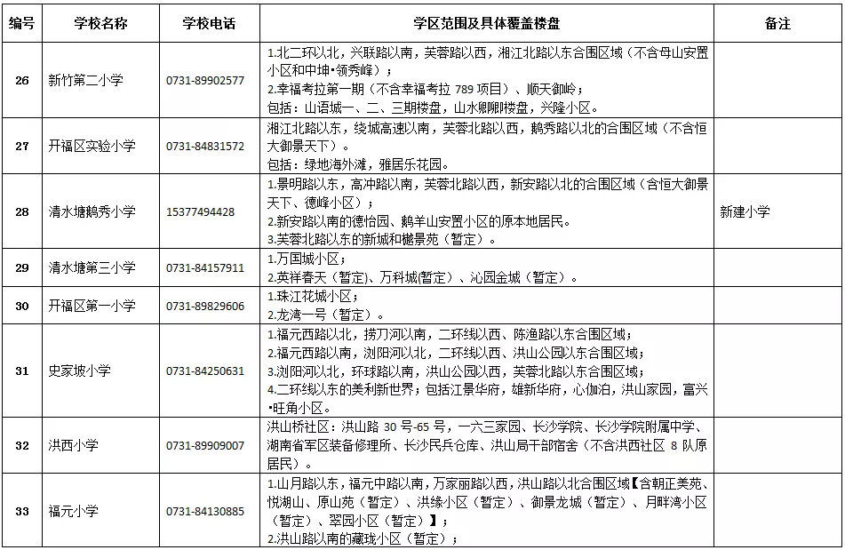 開福區(qū)小學學區(qū)劃分情況表