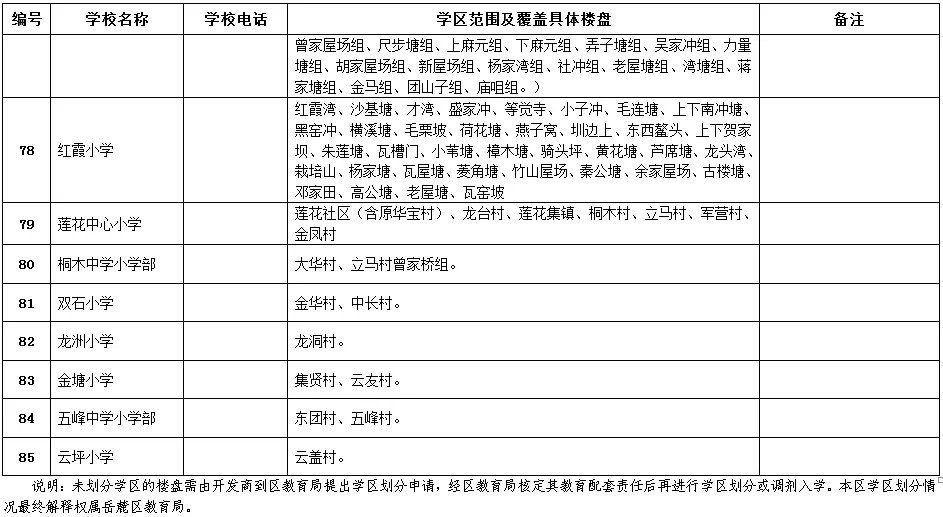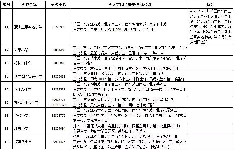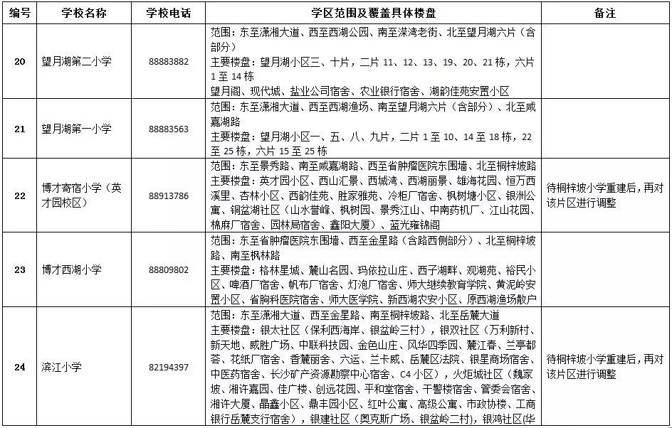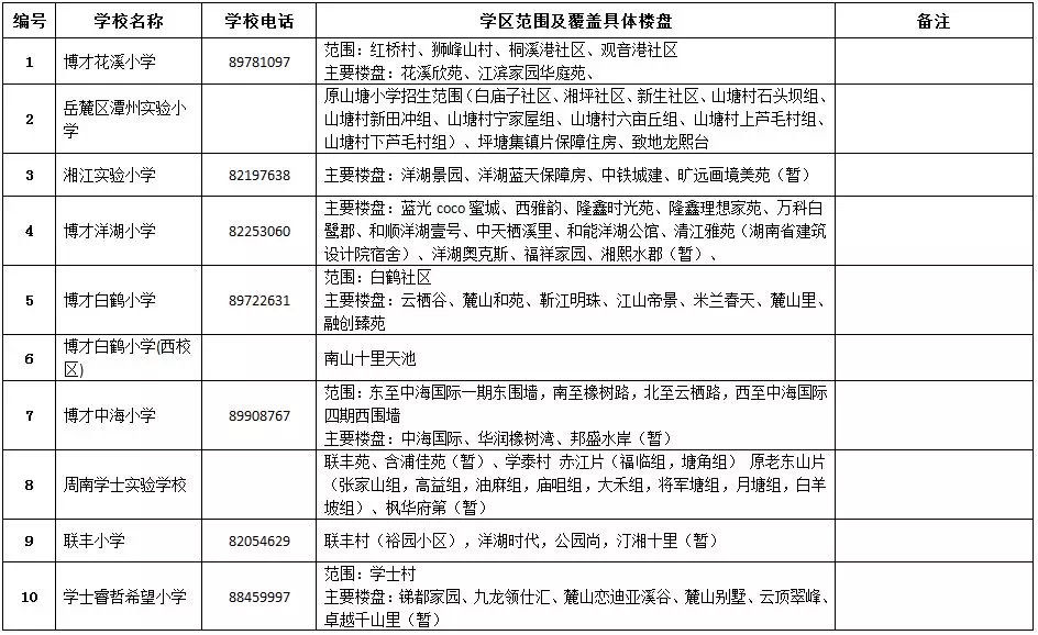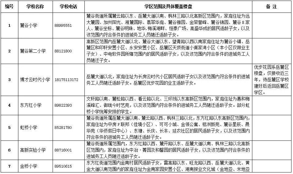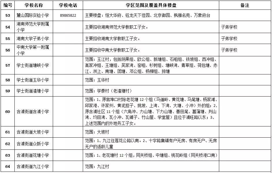 岳麓區(qū)小學學區(qū)劃分情況表
