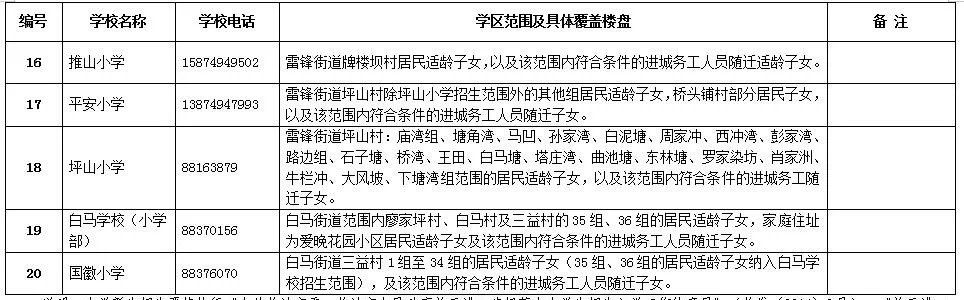 城區(qū)2019年外來務工人員適齡子女入學學區(qū)劃分表