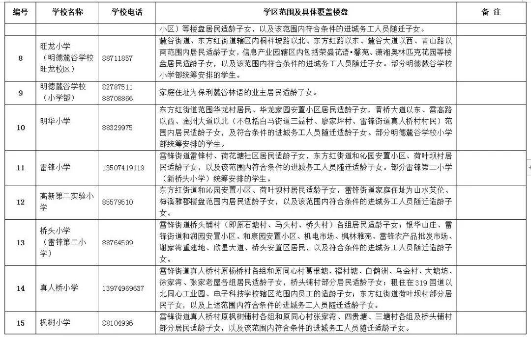 高新區(qū)小學學區(qū)劃分情況表
