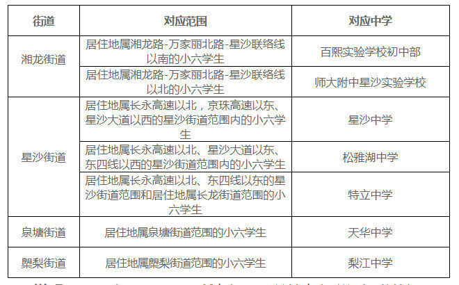 星沙(長沙縣)中學對應劃分情況表