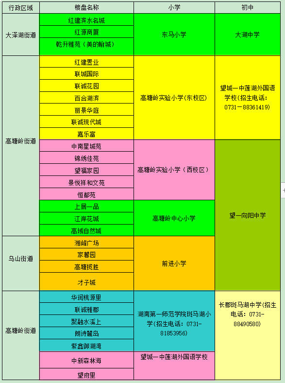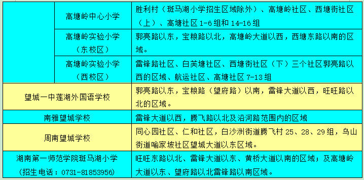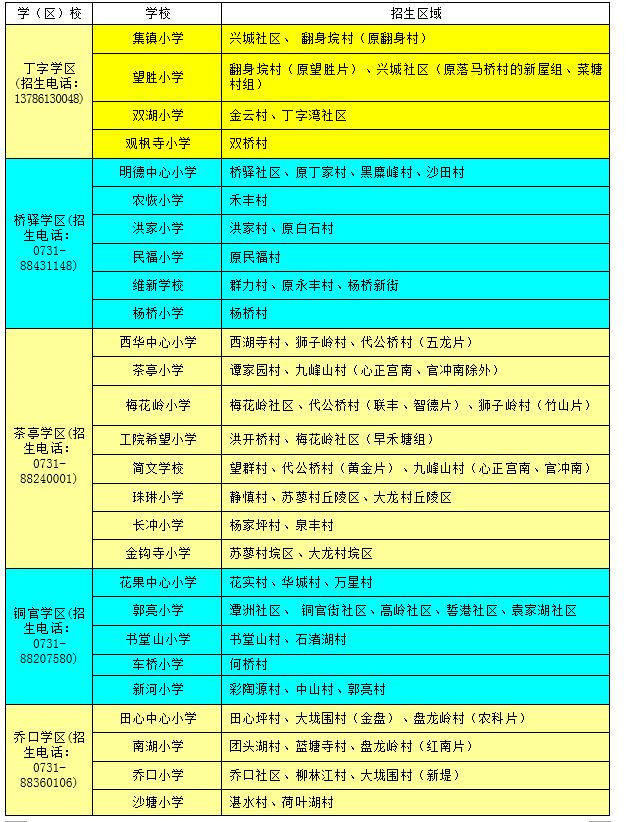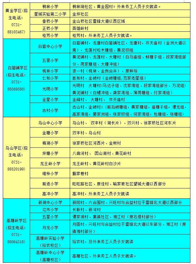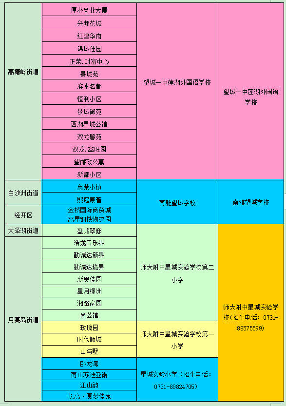 望城區(qū)小學學區(qū)劃分情況表
